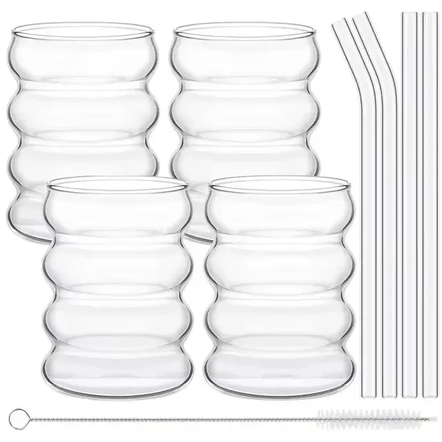 طقم أكواب زجاج مضلعة 4 قطع
